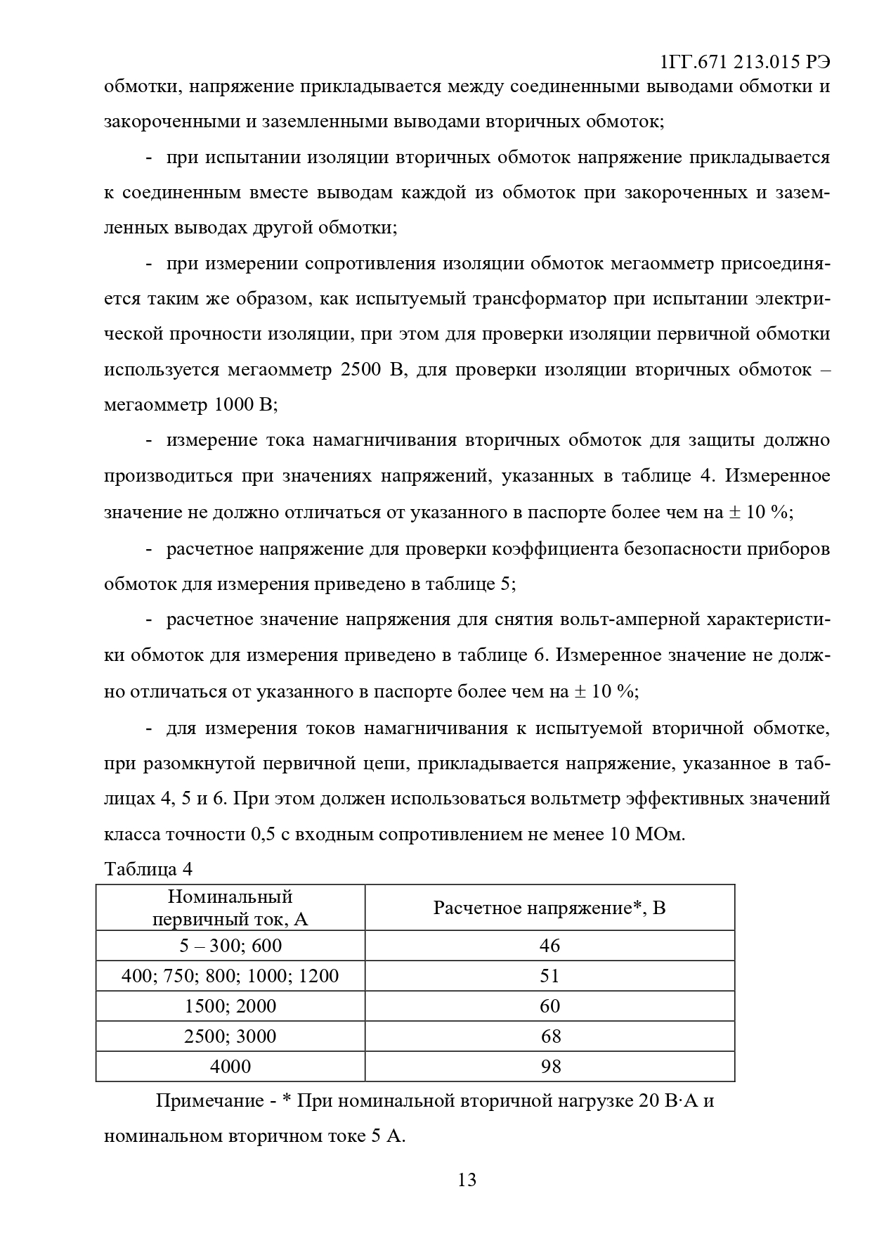 Номинальный коэффициент безопасности приборов вторичной обмотки для измерений, не более, в классах точности при номинальном первичном токе, А:
