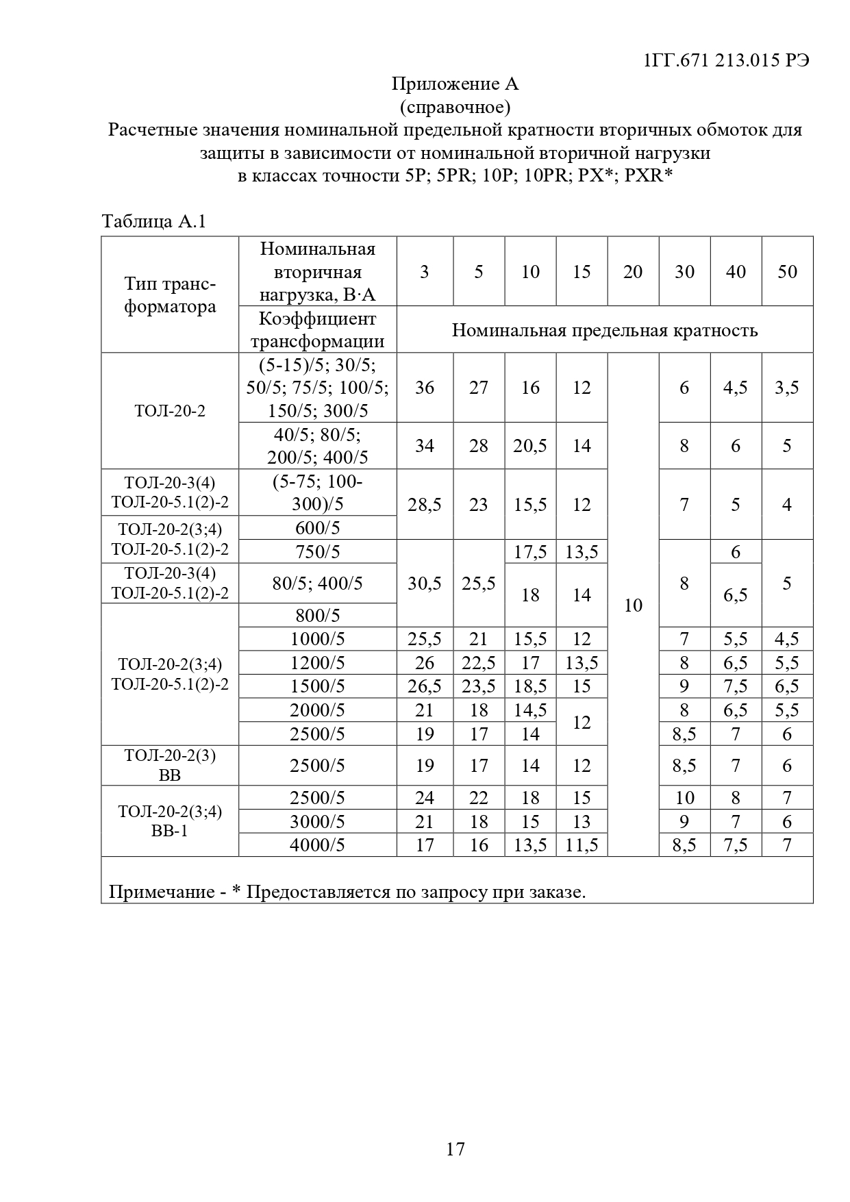 предельной кратности вторичных обмоток для защиты и номинального коэффициента безопасности приборов вторичных обмоток для измерений уточняются в заказе. В скобках указаны стандартные значения.