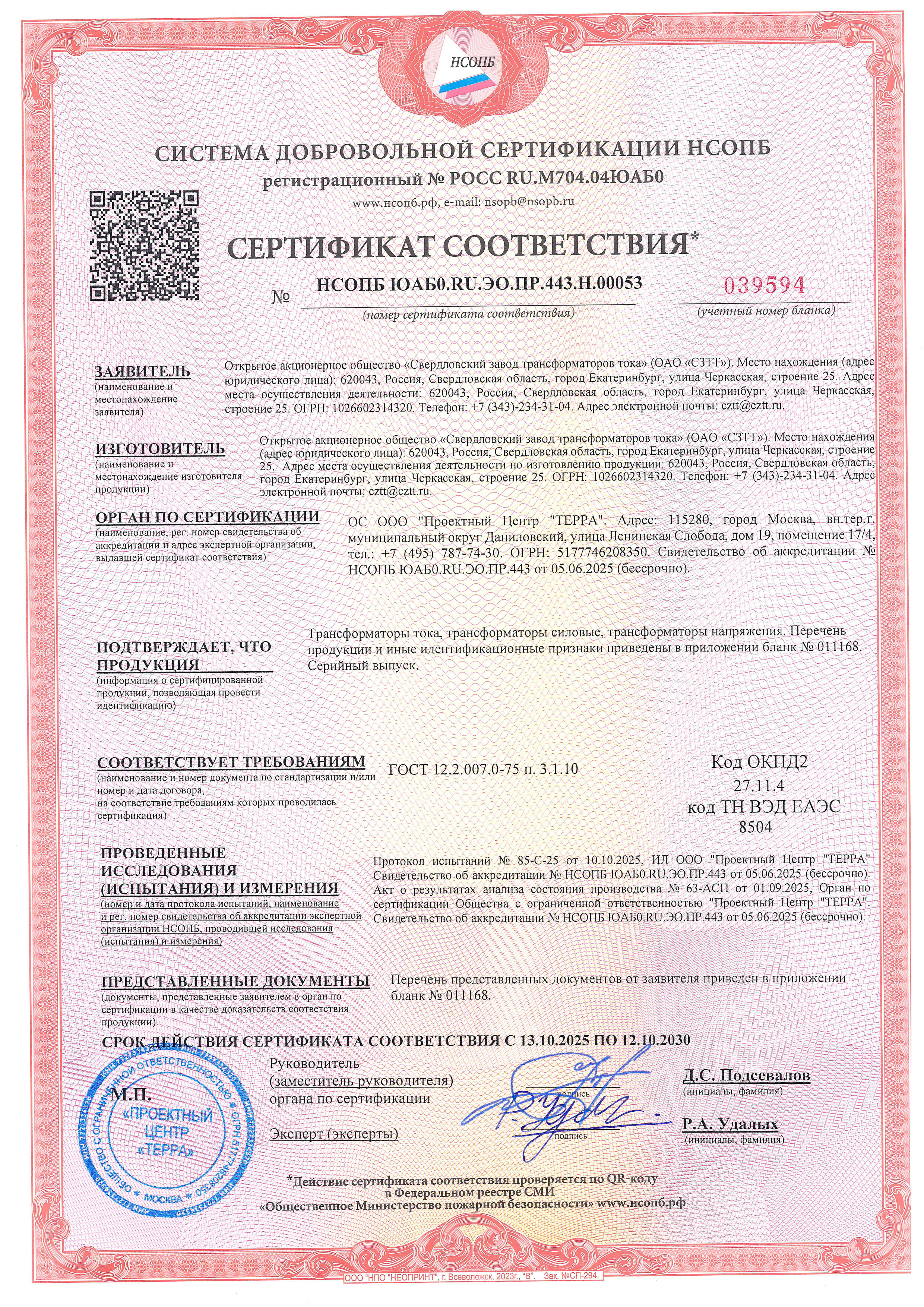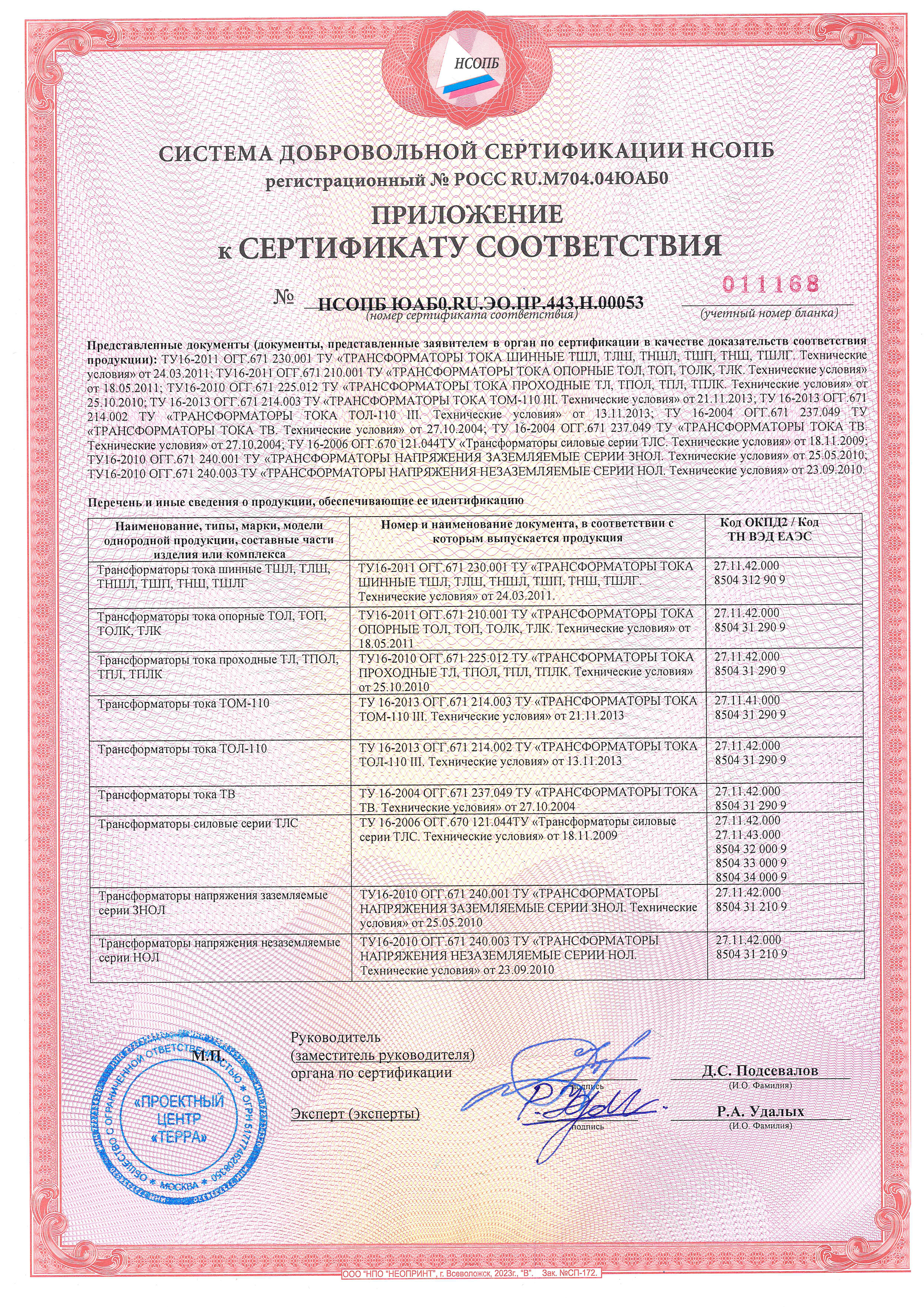 Сертификаты ТВ