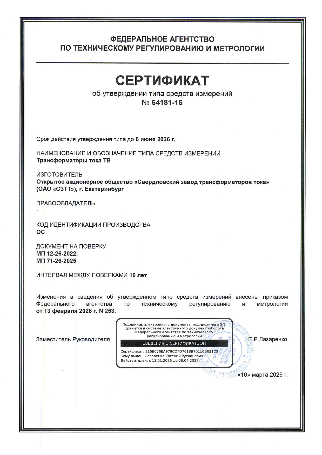 Интервал между поверками – 16 лет