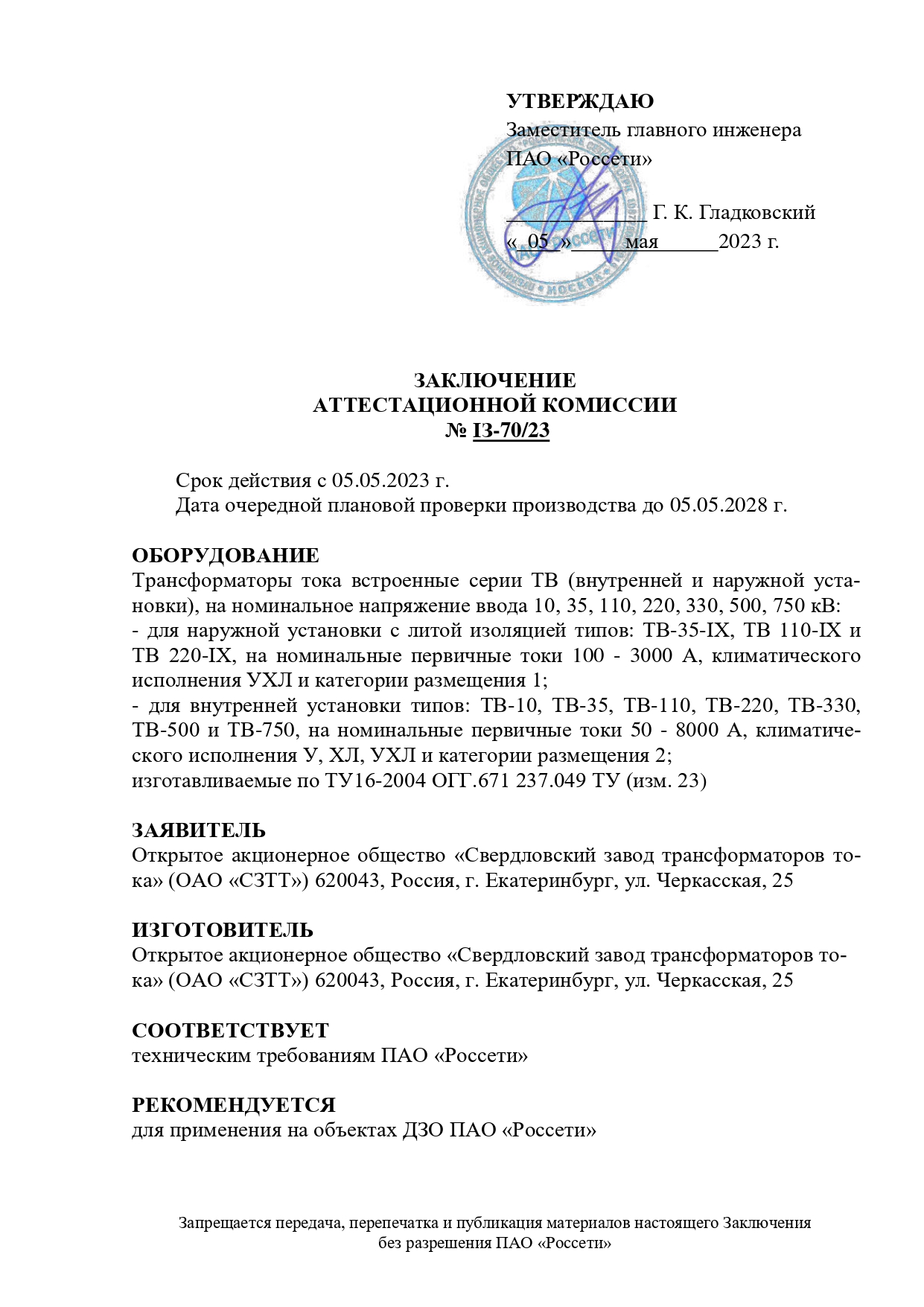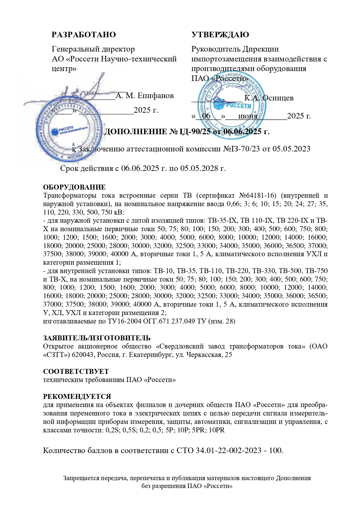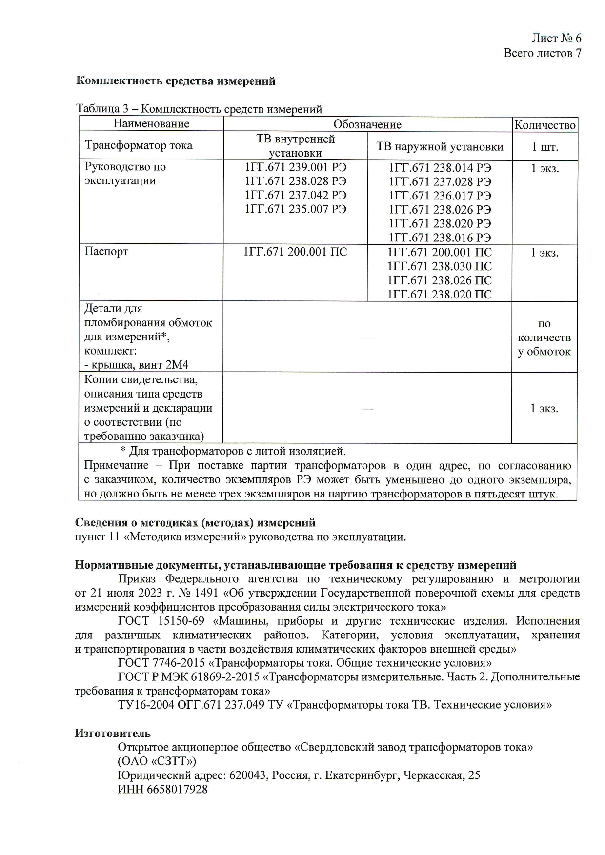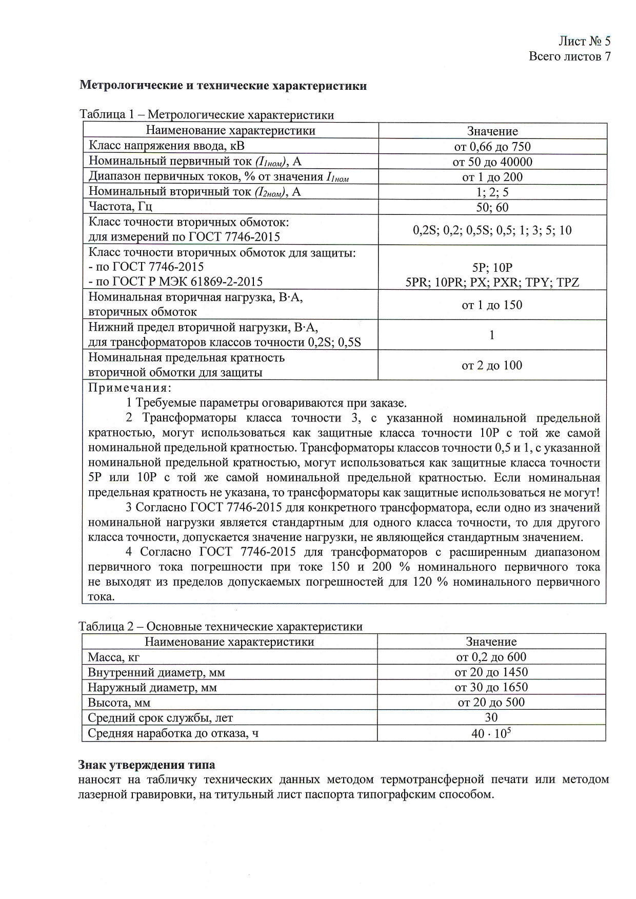 * Ток термической стойкости указан при обмотке, замкнутой на номинальную вторичную нагрузку. По согласованию с заказчиком допускается изготовление трансформаторов с другими техническими параметрами.